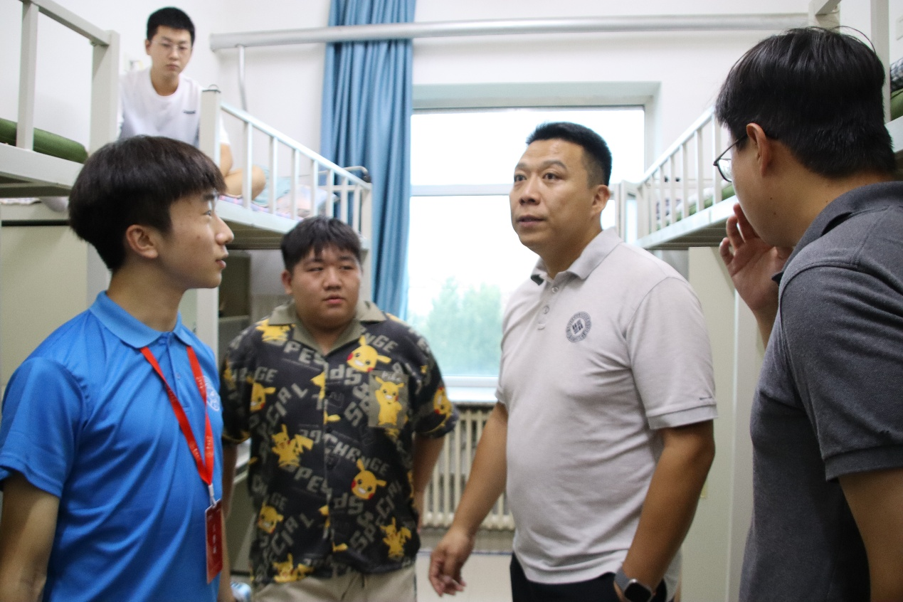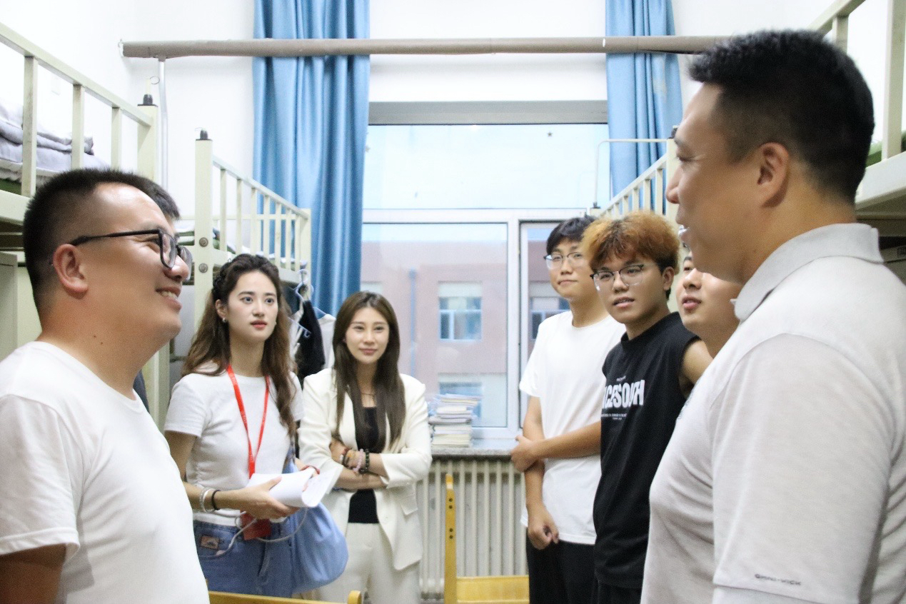 党委副书记李阳、学生工作办公室主任兼2025级辅导员韩旭、2024级辅导员宋梓豪、辅导员助理程肖琳共同前往新生宿舍北苑一公寓和南苑四公寓进行走访慰问,与新生及家长展开面对面交流,向同学们致以诚挚问候与新学期的美好期许,切实传递出澳门博彩对学子的深切关怀与暖心关切。