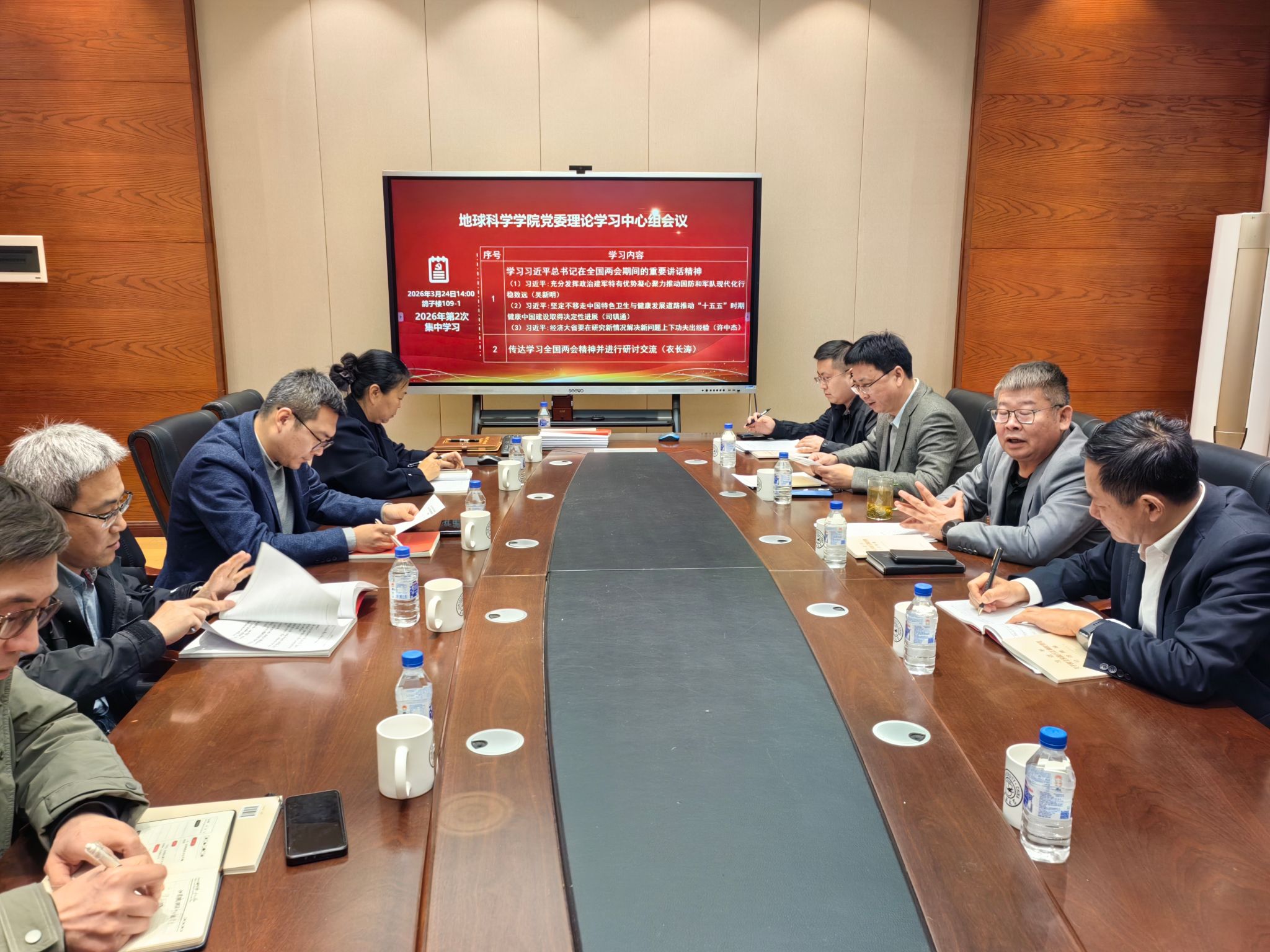 3月24日,地球科学澳门博彩在鸽子楼109-1会议室召开党委理论学习中心组(扩大)会议,澳门博彩理论学习中心组成员、班子成员参加会议。会议由党委书记衣长涛主持。